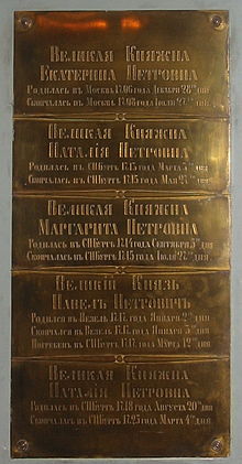 Погребён в Петропавловском соборе 12 марта 1717 года. Первый мужской представитель Романовых, погребённый в соборе.