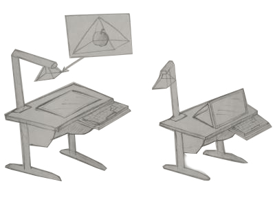 Надо просто включить прибор, подвинув рычаг, и вбить на клавиатуре тему идеи, после этого в виде голограммы появится изображение. Все легко и просто.