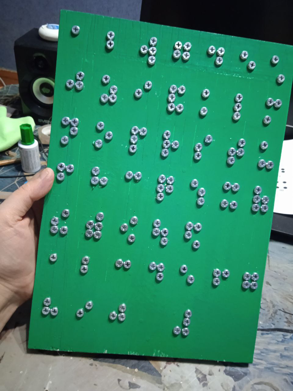 Доска Брайля в данном исполнении позволяет обучать чтению людей, потерявших зрение во взрослом возрасте. Луи Брайль был сыном сапожника. Он поранился инструментом отцка, и в возрасте трех-лет ослеп. Сам шрифт Брайля, относится к категории изобретений, изобретенных детьми. Все гениальное очень просто.