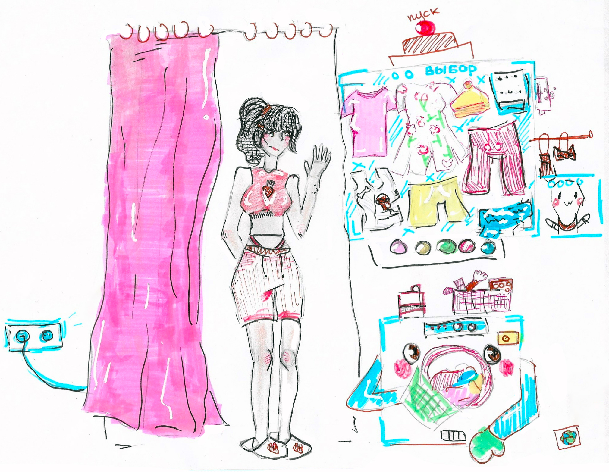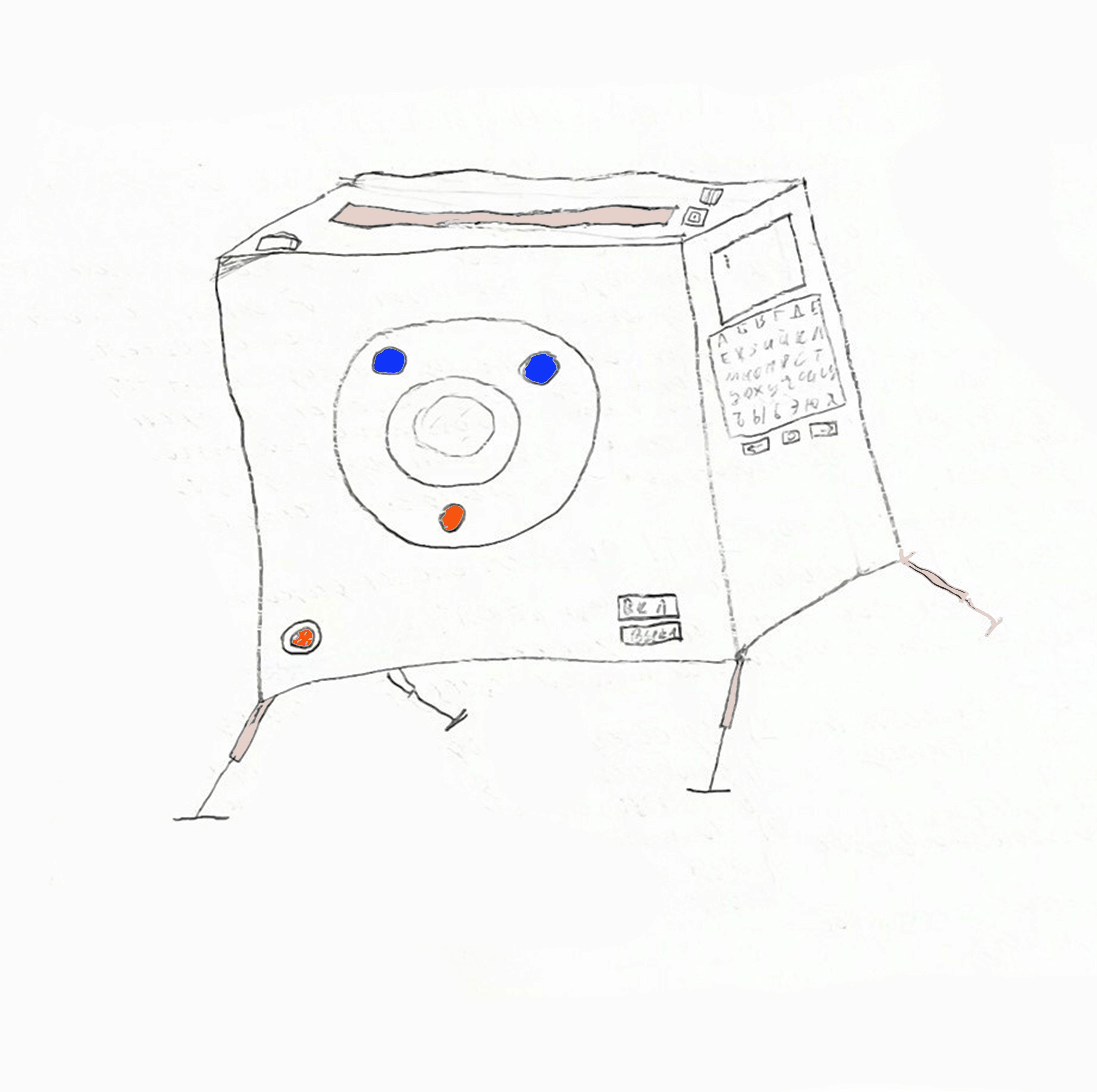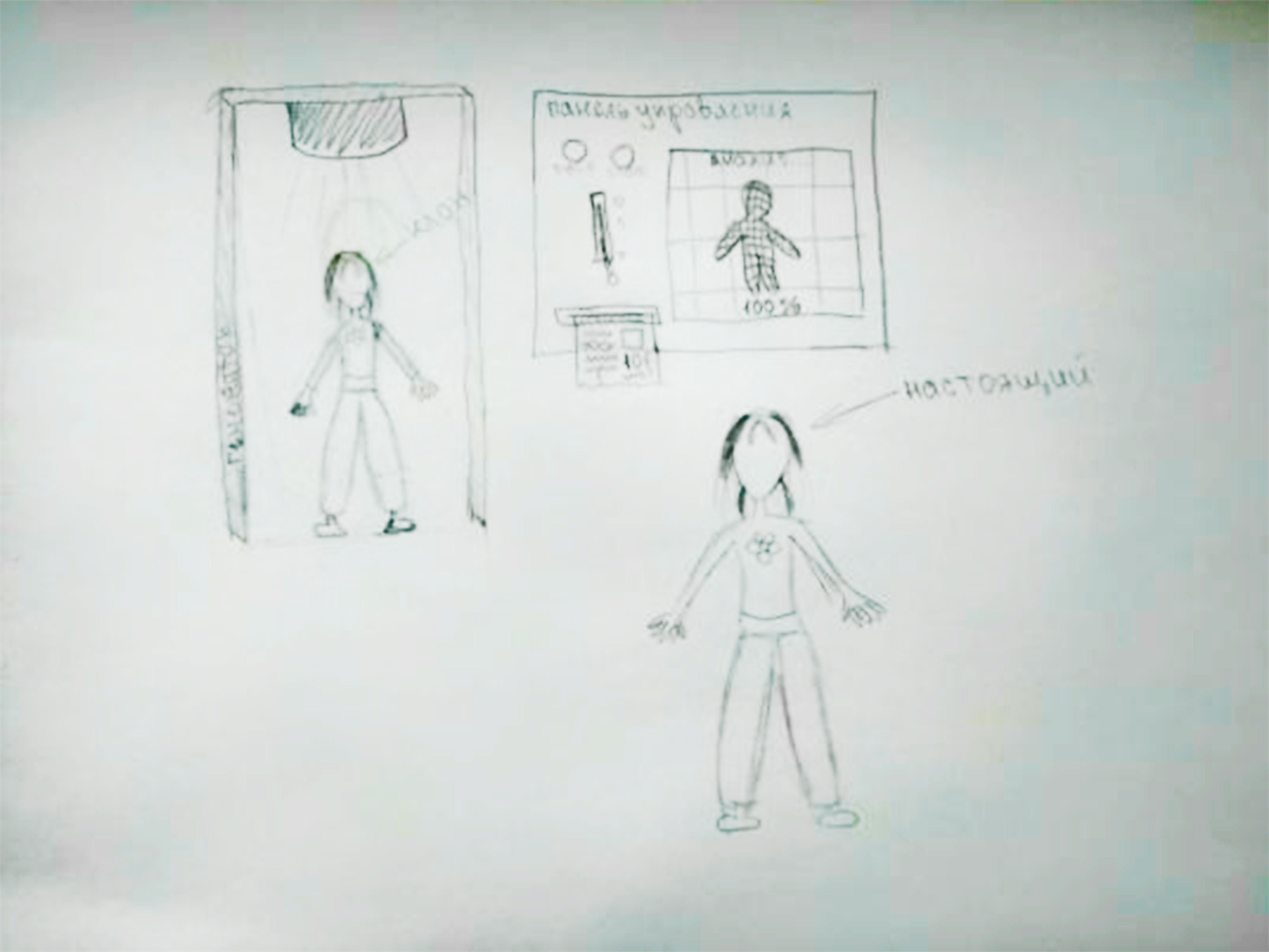 Теперь постараюсь описать это устройство. «Генератор одежды» похож на большой белый принтер размером со стол. У него есть встроенный компьютер и лоток, на который выходит «напечатанная» одежда. Работает мое изобретение от аккумулятора, который нужно заменять.