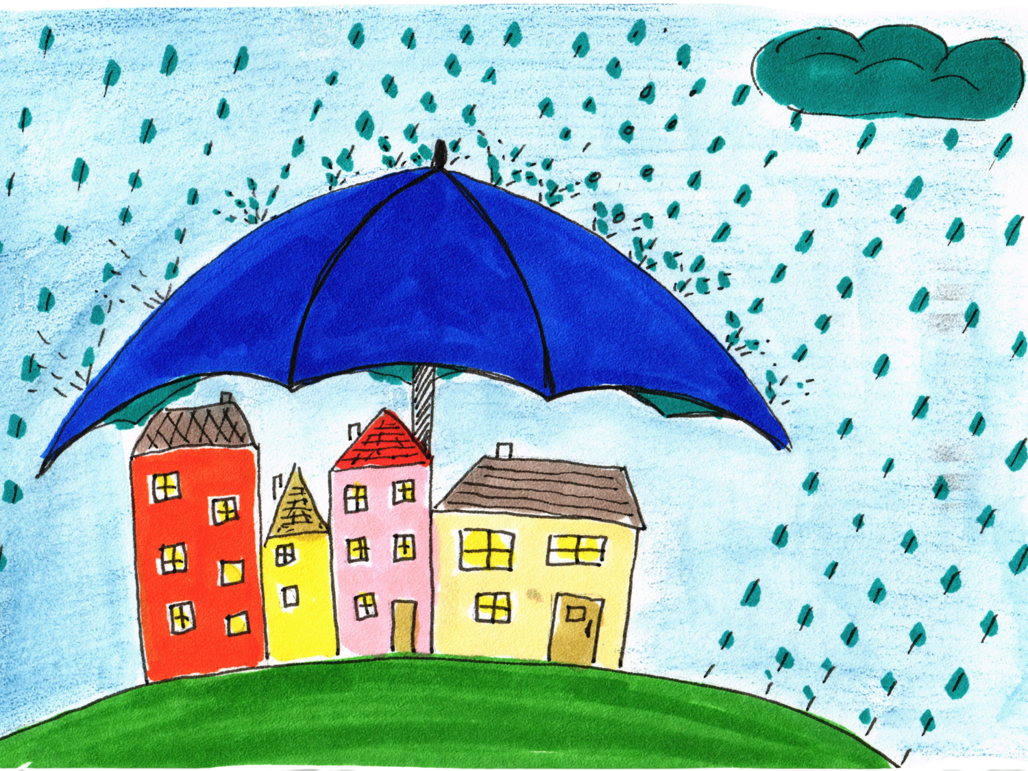 Если город накрывает непогода — раскрывается гингантский зонт и укрывает город от непогоды.