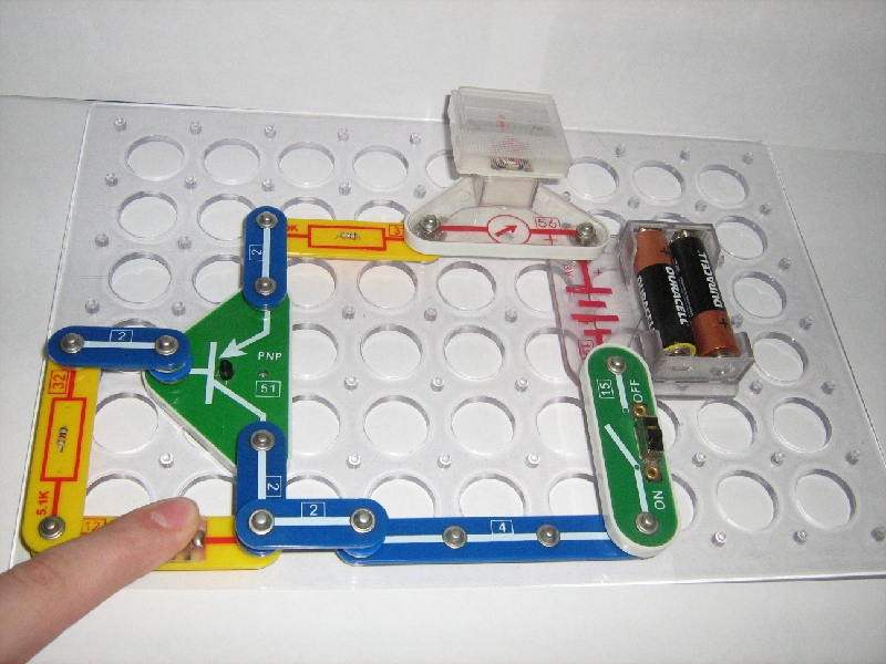 Перед вами детектор лжи с индикатором. Его я создал сам с помощью электронного конструктора.