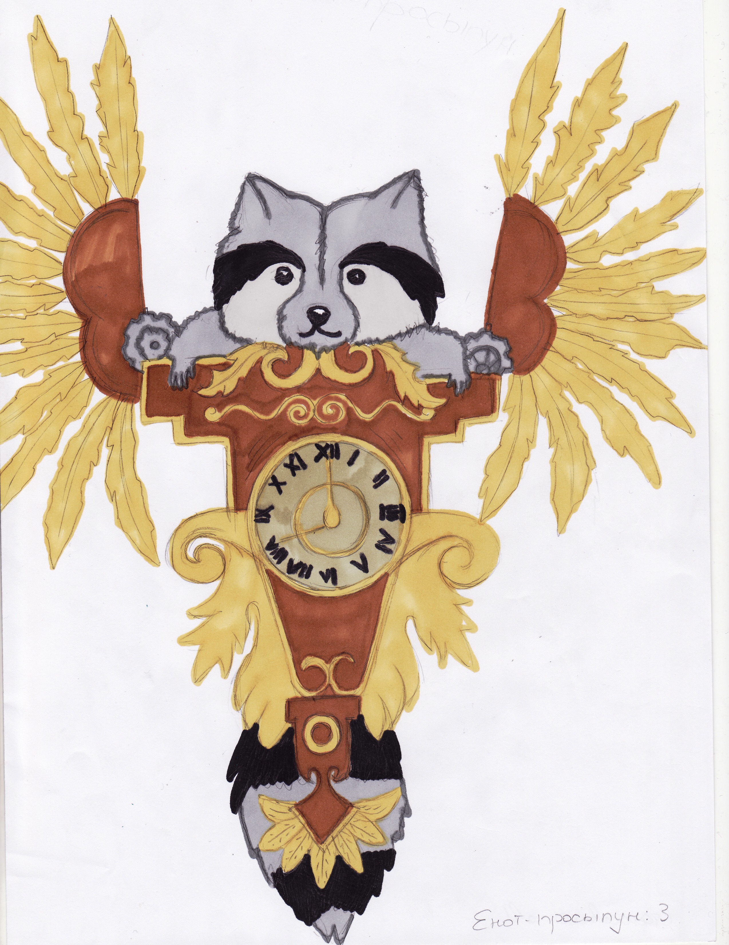 Я думаю, все сталкивались с этой проблемой. Утром звонит будильник, а вы не можете встать. Предвставляю вашему вниманию усовершенствованный будильник, «Енот-просыпун». Он выглядит как обычный будильник, но в него встроен енот, оснащённый механическими крыльями.