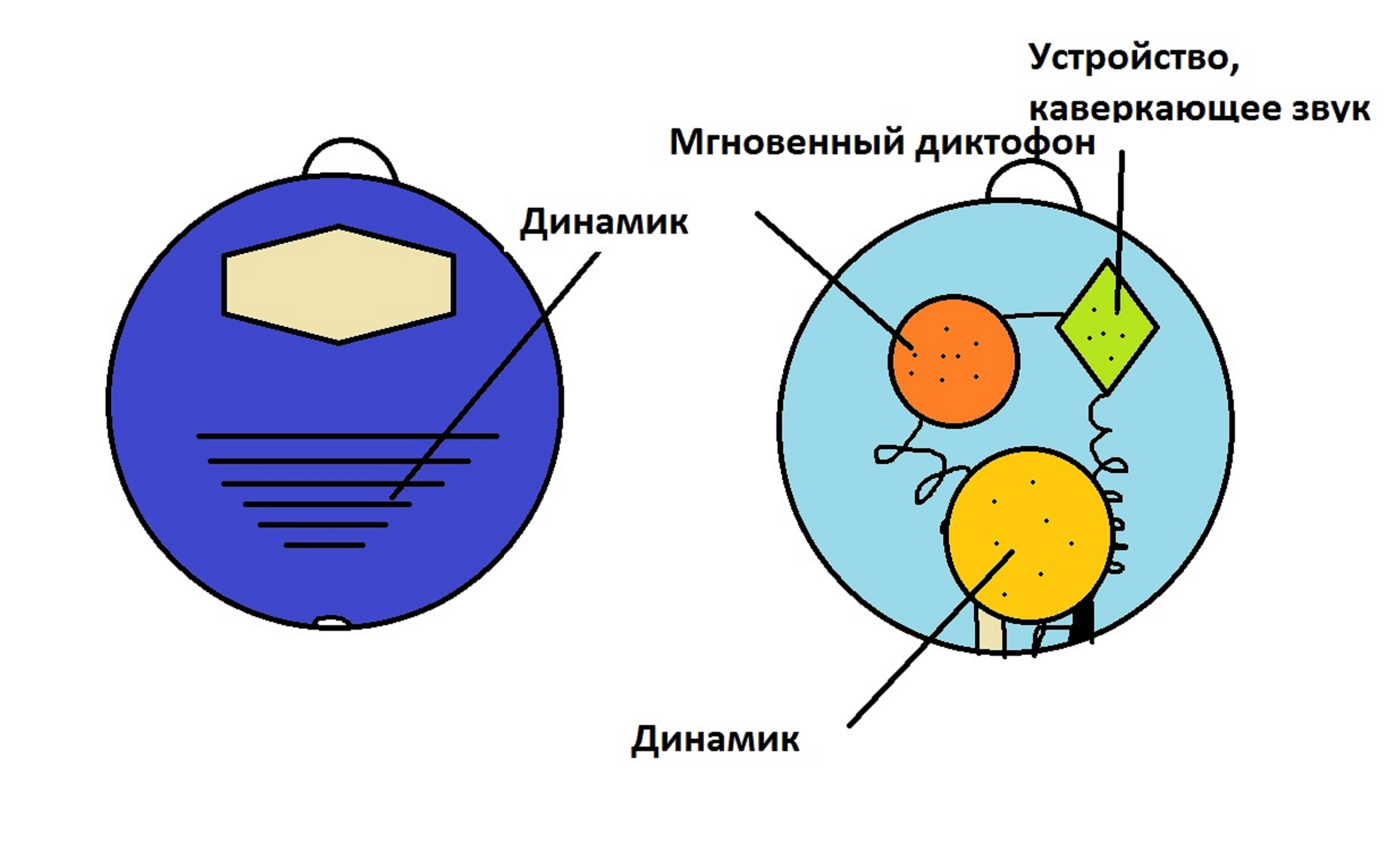 динамиков, воспроизводит на понятном нам языке. Крепится за ухом,