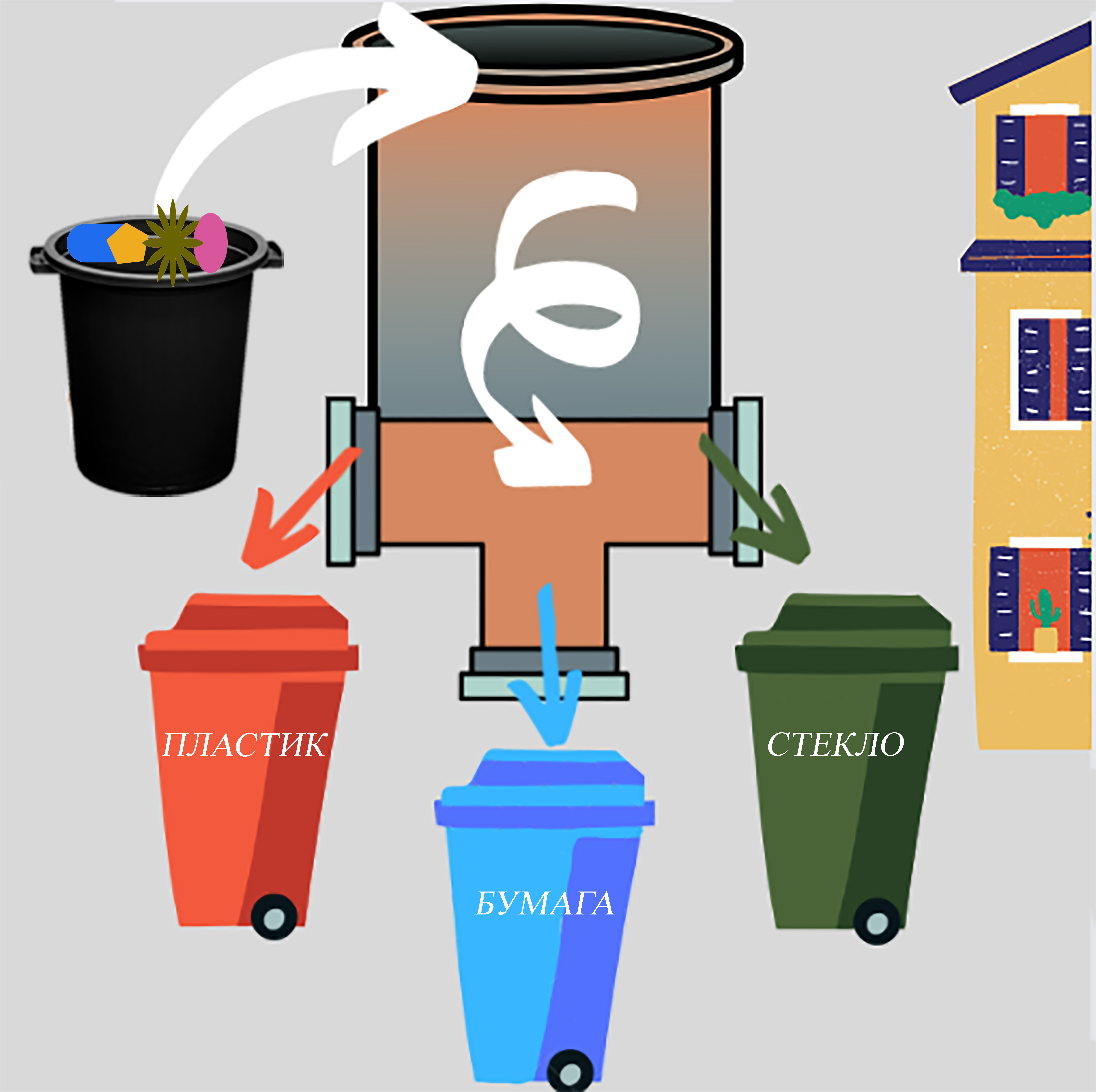 Каждый человек, ежегодно производит более трехсот килограммов бытовых отходов. Мусорные полигоны растут со скоростью света, загрязняя окружающую среду. Люди, которые обеспокоены проблемами экологии уже давно самостоятельно сортируют мусор по бакам. Но, проблема в том, что не везде есть такие контейнера, и не каждый человек хочет тратить на это свое время. Поэтому мой инновационный мусоропровод позволит без труда распределить бытовые отхода автоматически. Вам будет достаточно выбросить мусор в приемник мусоропровода и за счет центробежной силы и калибровки мусора (форма, размер, вес), высокотехнологичный мусоропровод распределит отходы в разные сектора (стекло, пластик, бумага). Очень просто и удобно, а главное быстро.
