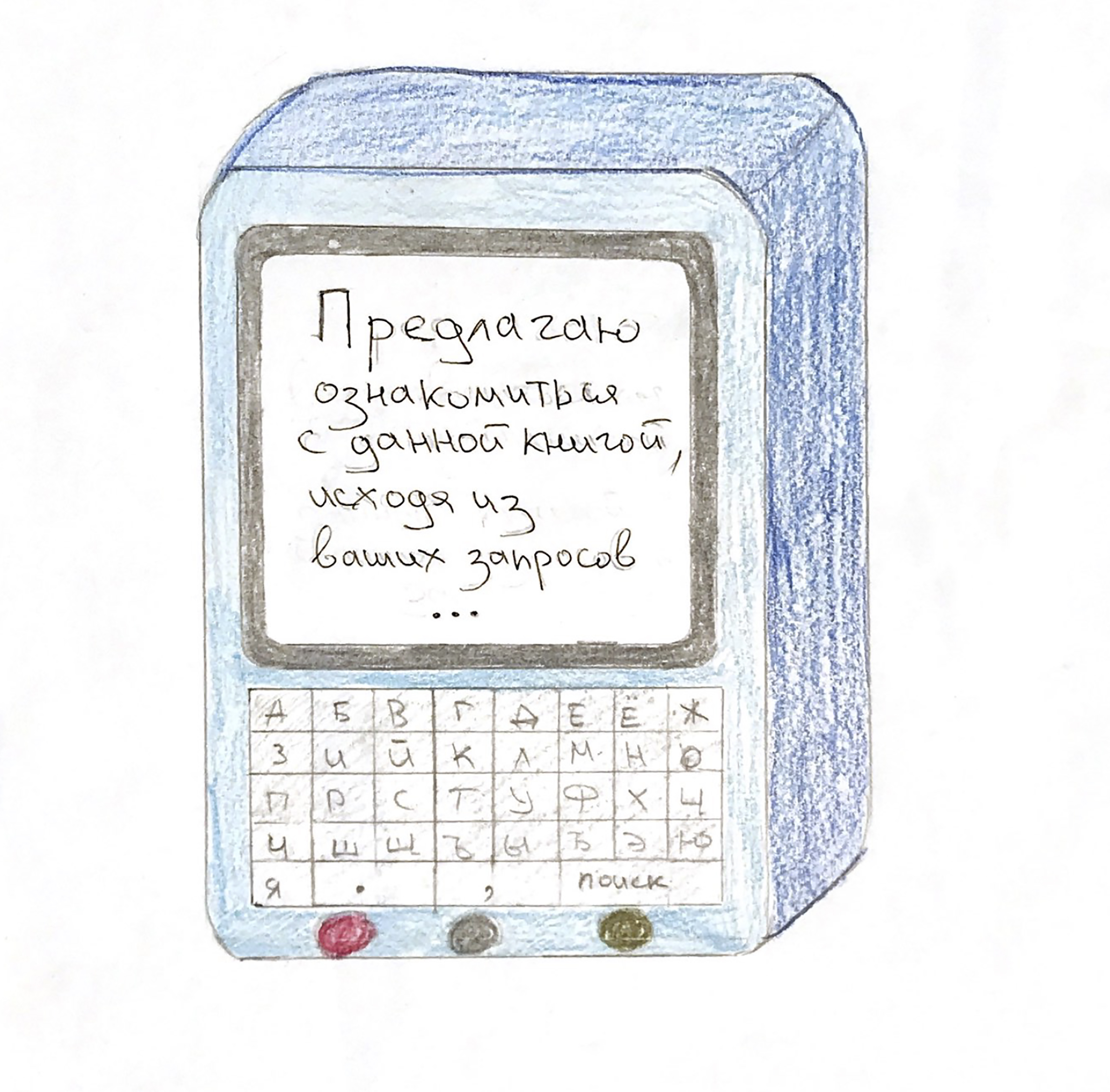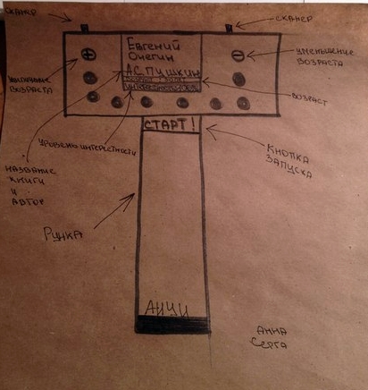 Изобретение предназначино для того что бы узнавать интересность книги. Так как у некоторых нет возможности прочитать отзывы о той или иной книге. Функционирует оно очень легко. Для начала мы должны выбрать свой возраст, это делается для того, чтобы аппарат смог выбрать для вас правильный «процент интерестности». Дальше мы подносим устройство к книге и оно начинает искать нужную вам информацию по содержанию. Всё делается в считаные минуты. Далее на экране появляется значок процента и название книги с её автором.//