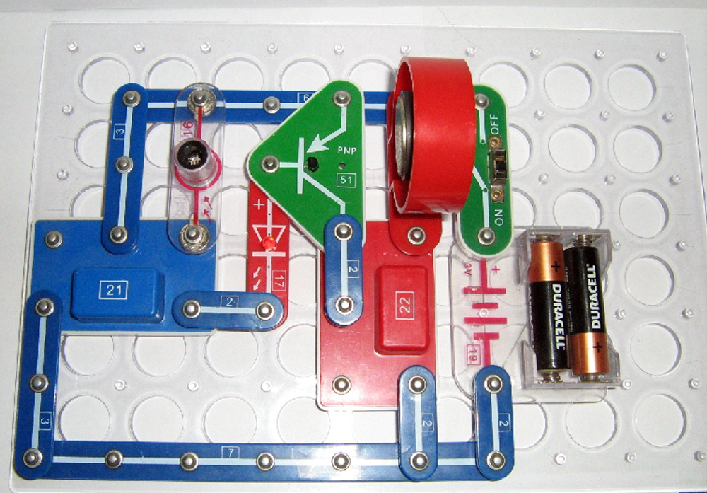 Перед Вами защитная сигнализация, срабатывающая от световых сигналов. Она создана мной с помощью электронного конструктора. Инструкция 1. Замкните выключатель (деталь 15). Если Вы услышите звук пулеметной очереди из днамика, и загорится красный светодиод, это значит, что прибор исправно работает. 2. Поместите сигнализацию в комнату ночью. Если вор войдет в комнату и включит свет или свой фонарь, свет попадет на фоторезистор в приборе и из днамика раздастся звук пулеметной очереди, загорится красный светодиод.