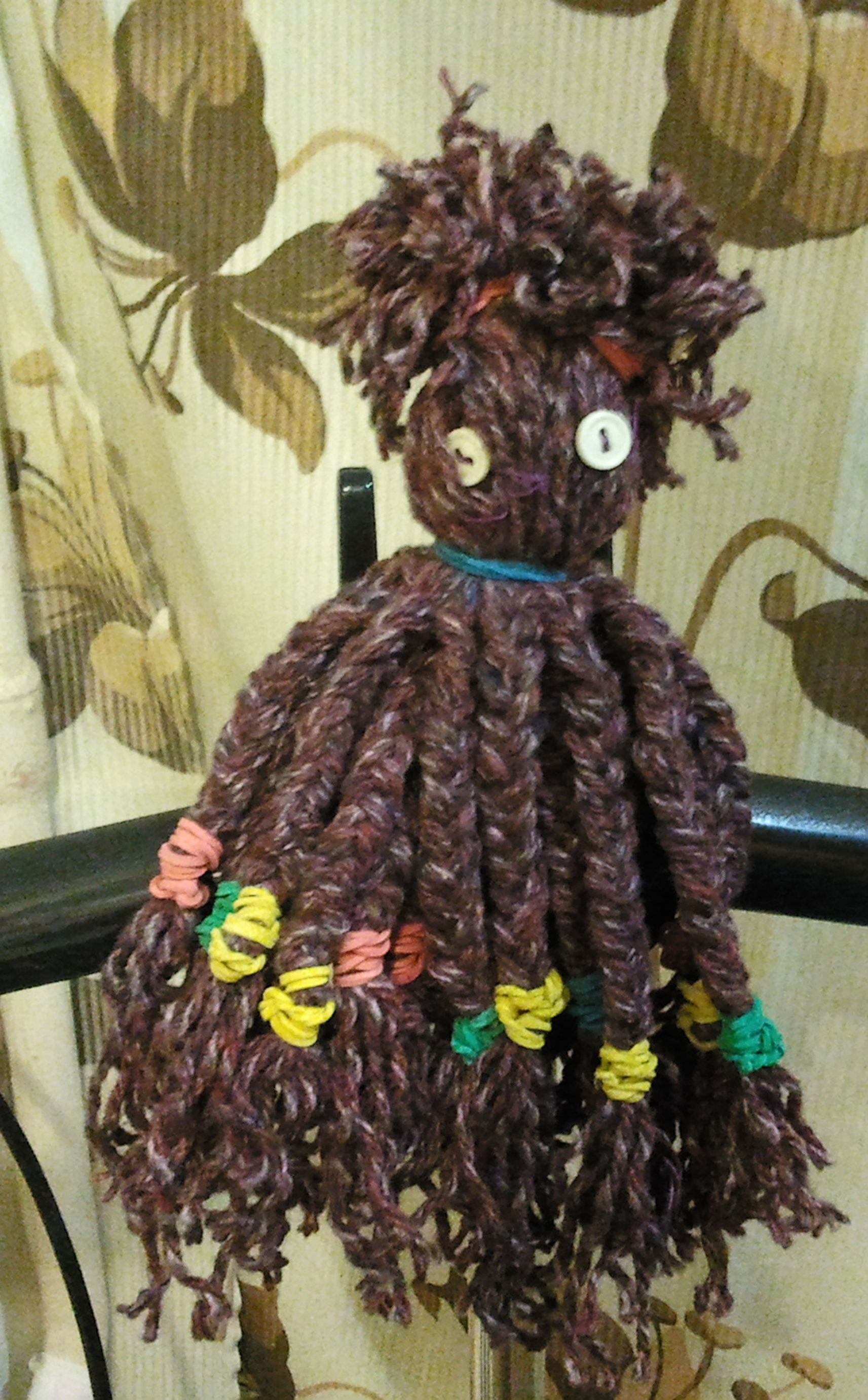 Идея пришла во сне. Проснулась и сразу начала вязать из пряжи свое изобретение. А потом украсила его канцтоварными резинками и пуговицами.