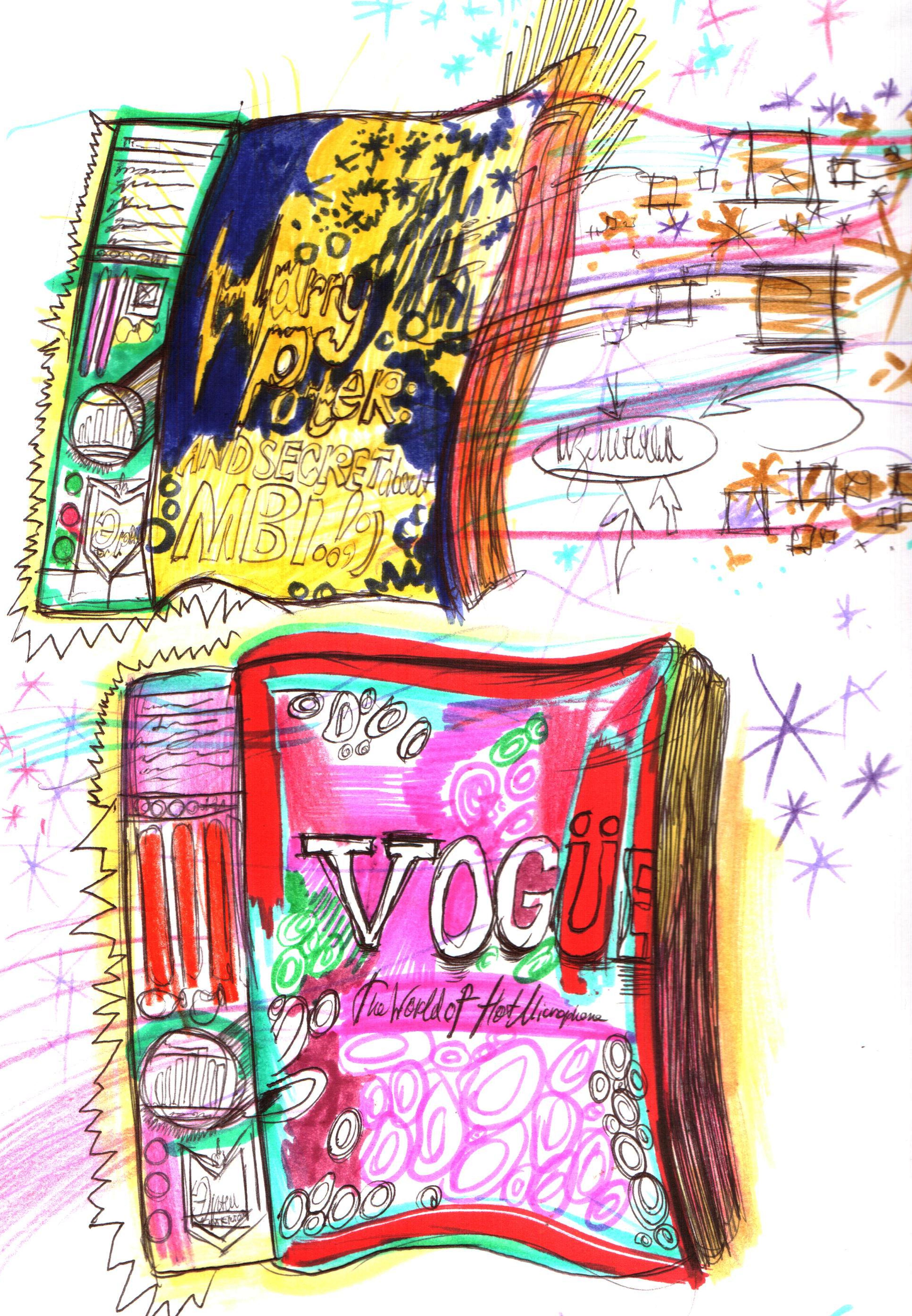Люди, которые хотят использовать волшебную книгу или просто почитать ее, надевают специальные «шапки» на себя и подключают свой мозг к этому механизму. Дальше им в руки даются пустые книги, и, как только механизм, то есть волшебная книга подключается к мозгу читателя, то через все систему организма человека механизм узнает, какой стиль любит читатель, тем самым вместо обычной книги у человека в руках появляется та книга, которую механизм решил предложить читателю.