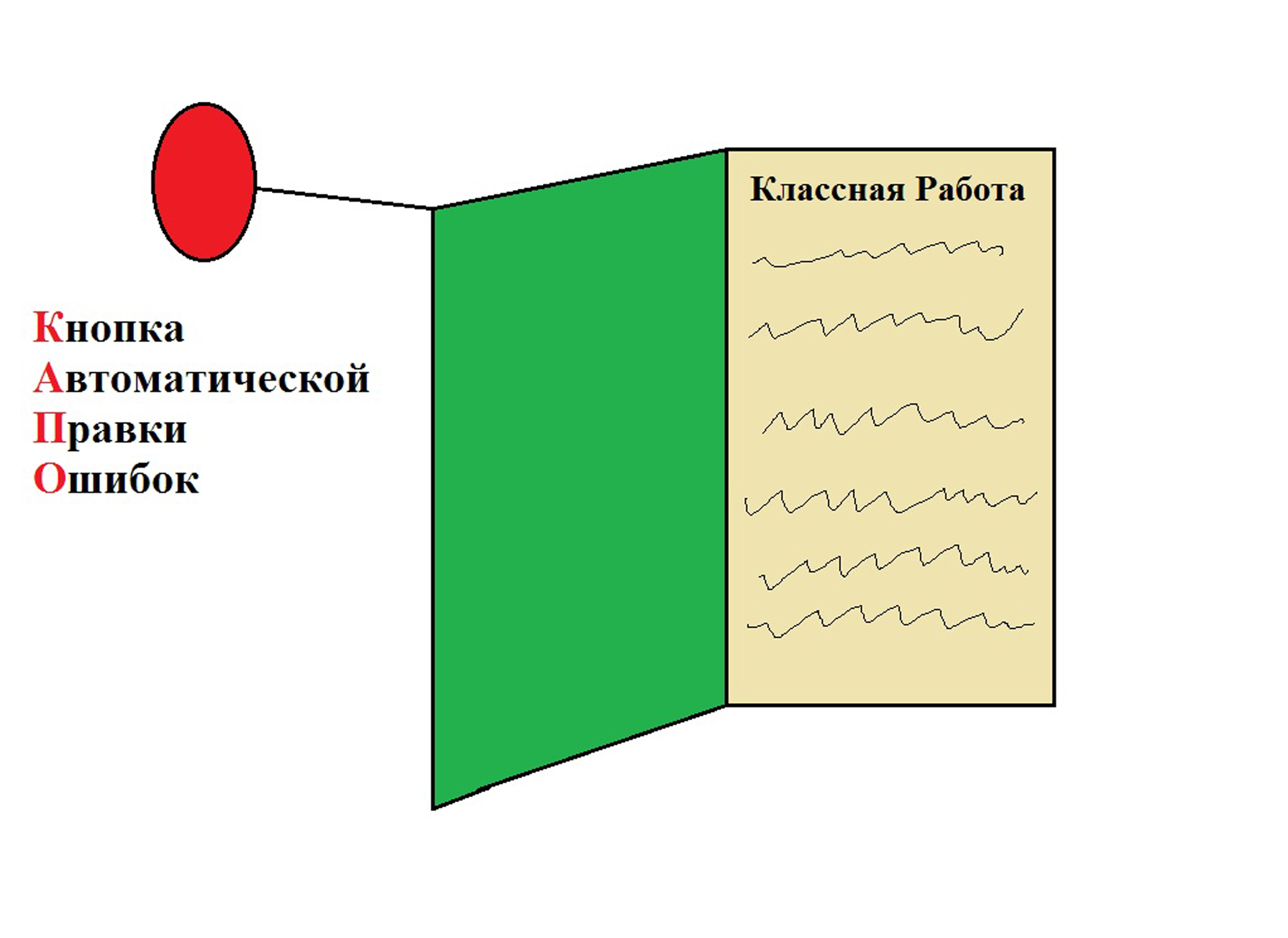 «КАПО» — кнопка автоматикческой правки ошибок. Универсальная вещь для любой тетради или ежедневника, так как ее работа не зависивит от количества страниц. Она присоединяется сверху к тетрадному листу и и сканирует текст. Затем атоматически исправляет орфографию и пунктуацию.