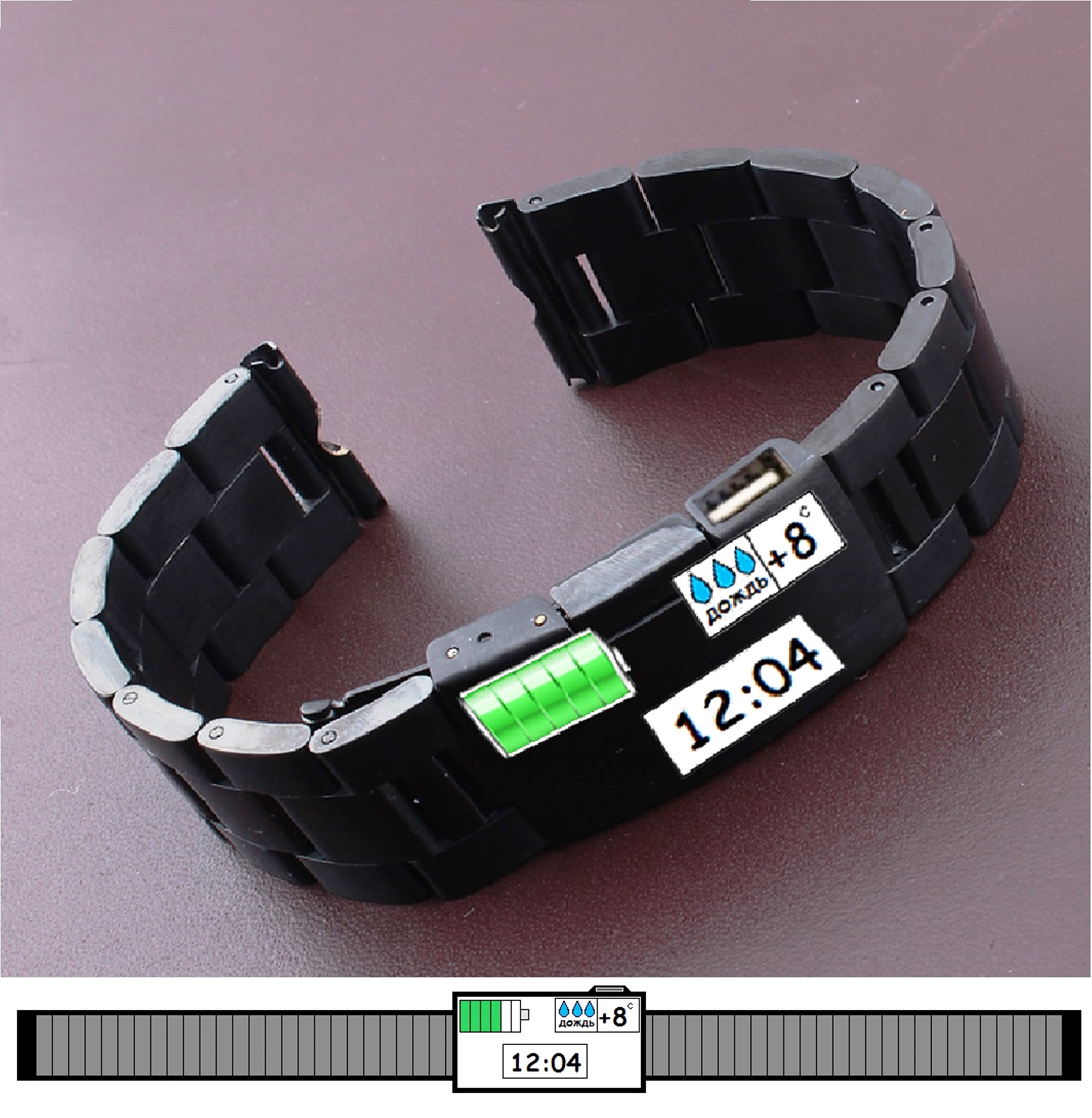 Комментарий Максим Шиян: К сожалению практически все описанное уже существует, для определения скорости ветра и осадков не нужны датчики, есть специальные виджеты для этого а магнитная застежка боюсь будет растегиваться при напряжении.
